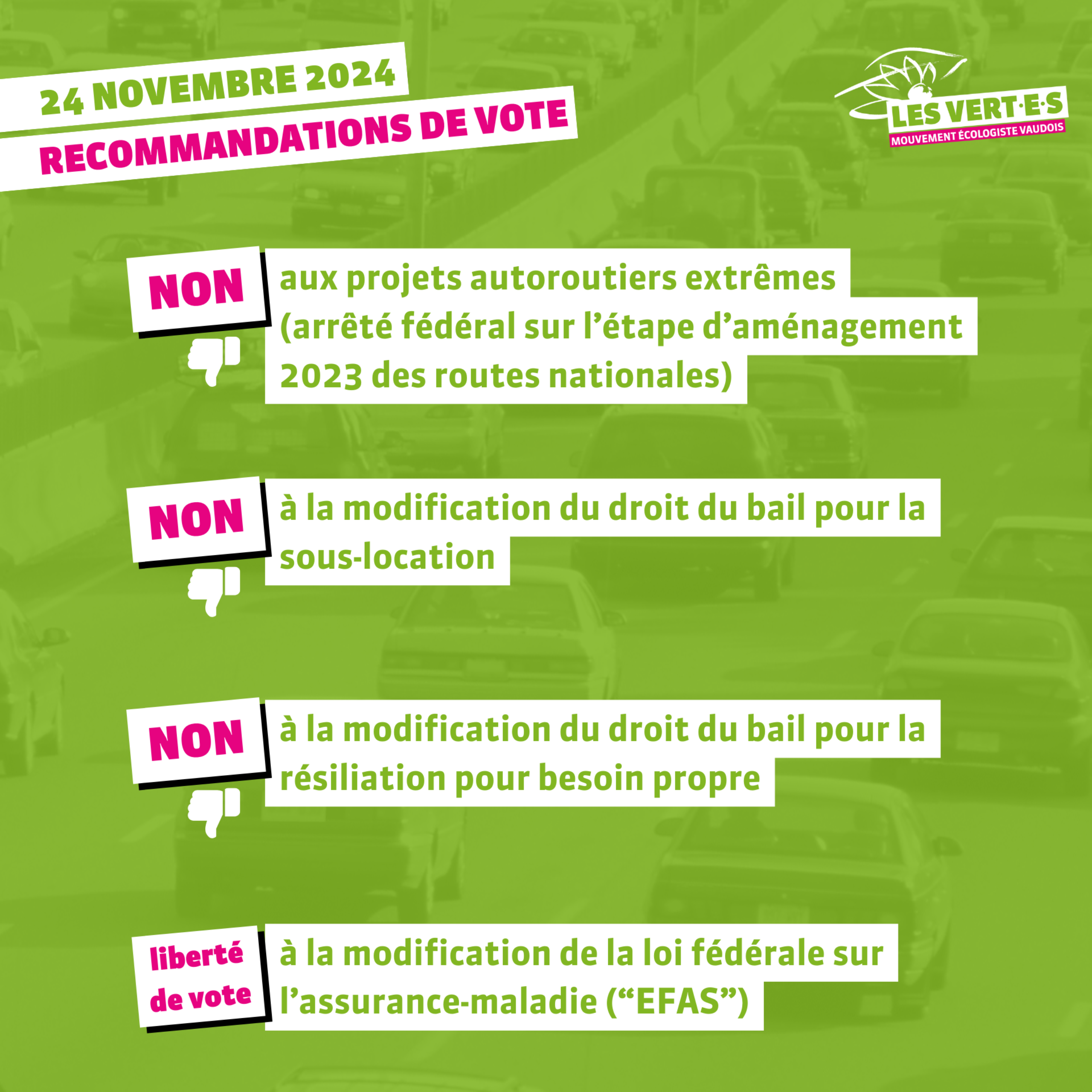 À l’unanimité, les Vert·e·s vaudois·es recommandent de voter deux fois NON le 24 novembre 2024 contre les révisions du droit du bail, qui faciliteraient les résiliations et permettraient aux propriétaires d’augmenter les loyers à chaque changement de locataire. Cette réforme est perçue comme une attaque du lobby immobilier visant à accroître ses profits sur le dos des locataires, dans un contexte où les loyers – tout comme beaucoup d’autres charges – ont déjà explosé. De plus, la stratégie législative fragmentée du Parlement, qui n’a pas regroupé les projets en une seule révision, est considérée comme antidémocratique.