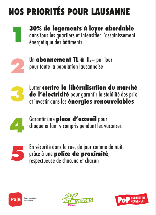Les Vert·e·s, Parti socialiste, POP : une alliance pour Lausanne !