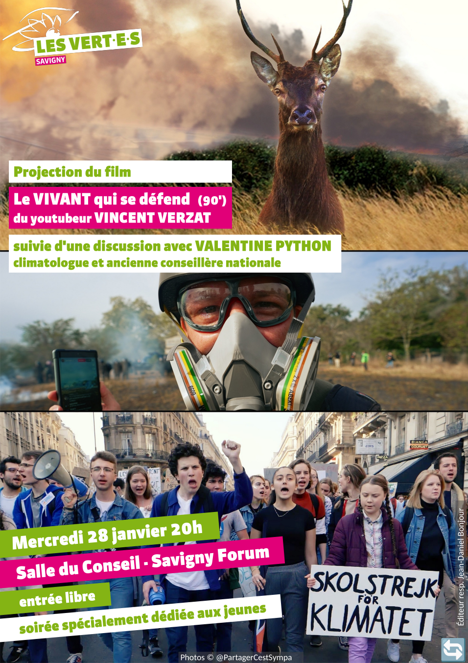 - 28 janvier 2026 à 20h : projection du film « Le Vivant qui se défend » et discussion avec Valentine Python (climatologue, anc. conseillère nationale)