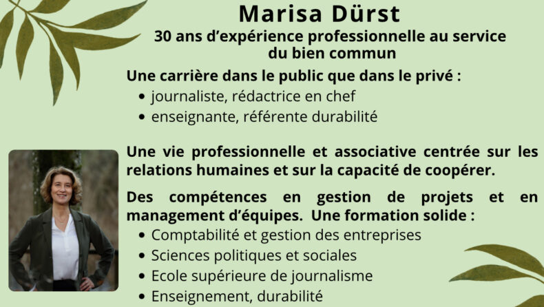 Renseignements complémentaires : Marisa Dürst marisa.duerst (at) vert-e-s-vd.ch, page facebook: marisa.durst.94