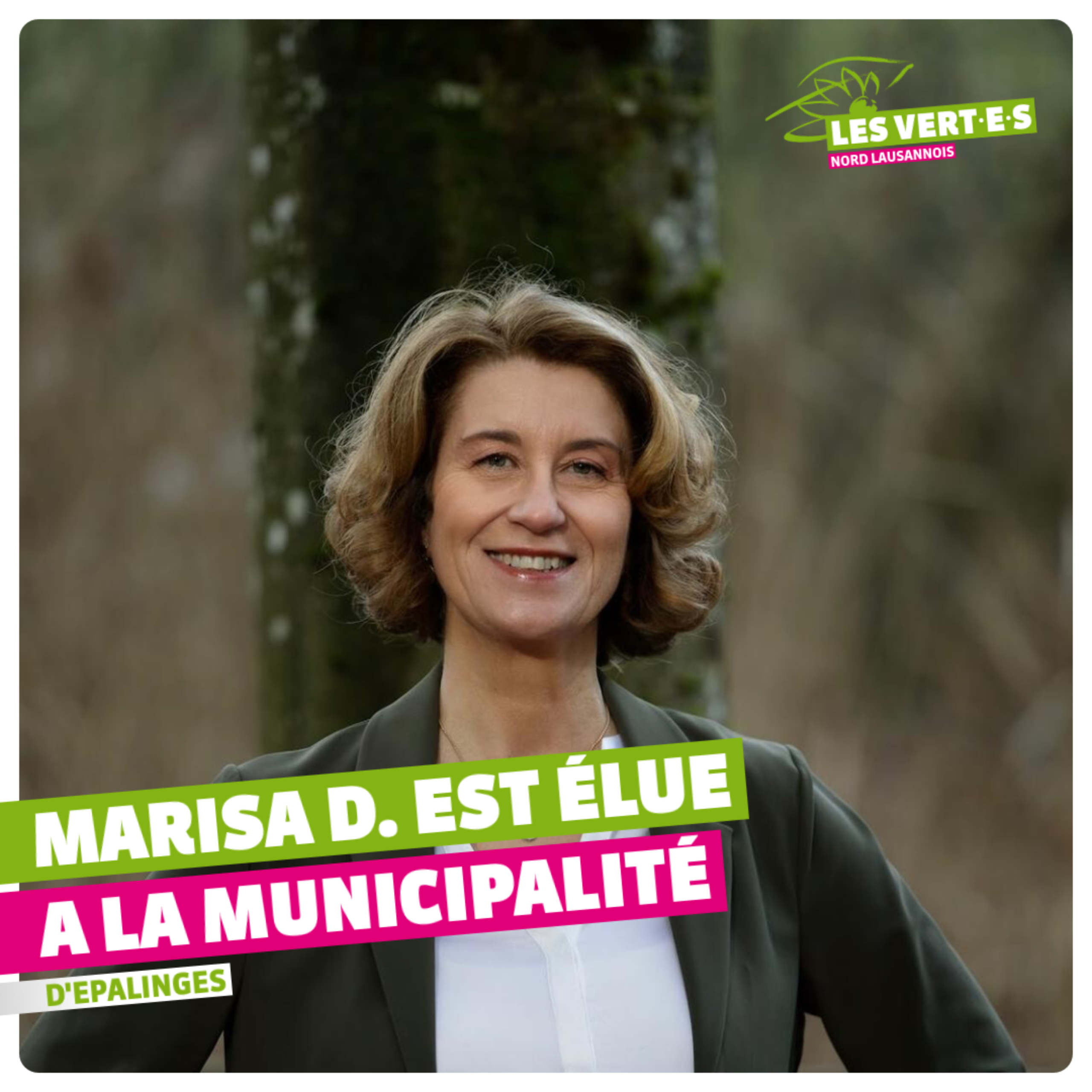 Après trois semaines intenses d’une campagne pour le 2e tour, Marisa Dürst est élue à la Municipalité d’Epalinges. Un grand merci et félicitations aux électeur.trices. qui se sont mobilisé.e.s pour sa candidature ! Marisa a hâte de défendre les valeurs de durabilité et d’équité !
